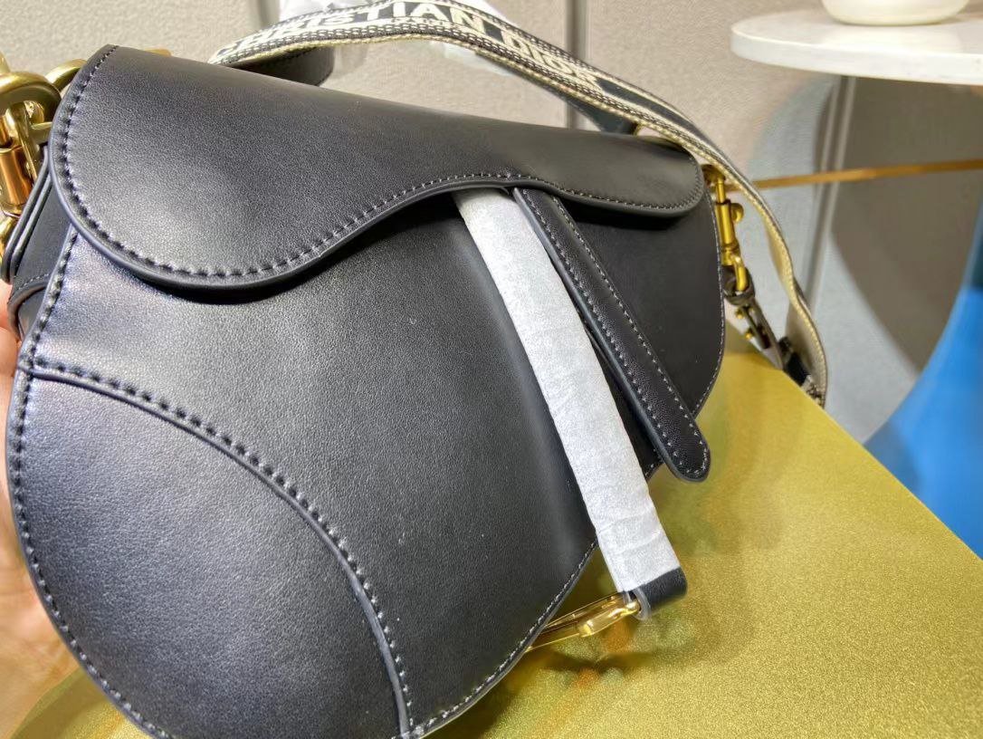 The Dior Saddle Bag in black calfskin (25×21 cm) is a true emblem of Dior’s bold and timeless style. Featuring the iconic saddle silhouette with a magnetic flap closure, this bag is crafted in smooth calfskin leather for a refined finish. Its versatile design allows it to be worn crossbody, on the shoulder, or carried by hand — making it a luxury essential for modern elegance.