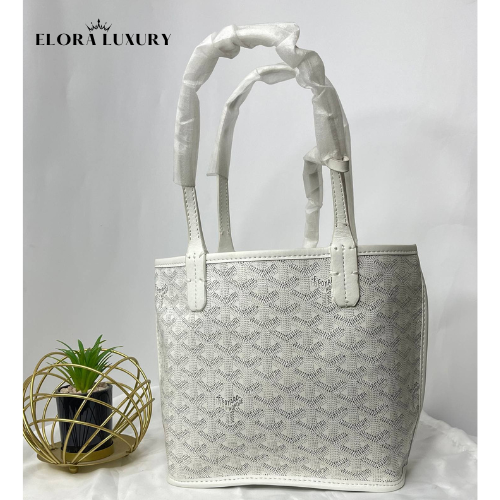 The Goyard Anjou Mini Bag in White is chic and versatile, featuring a reversible design with white Goyardine canvas and supple leather. A perfect match for elegant and minimal style lovers.