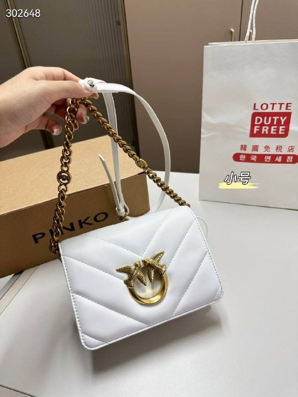 The Pinko Classic Love Click Big Chevron bag in white is the epitome of modern elegance. Crafted in fine leather with distinctive chevron quilting, it features the iconic Love Birds buckle. Available in Mini and Medium sizes, this luxury crossbody is perfect for styling from day to night with sophistication.