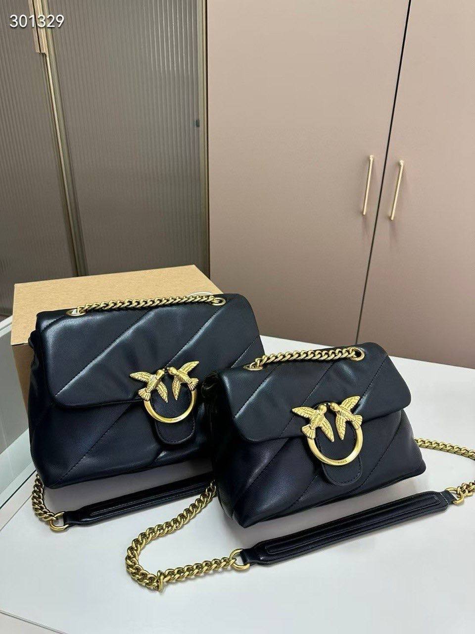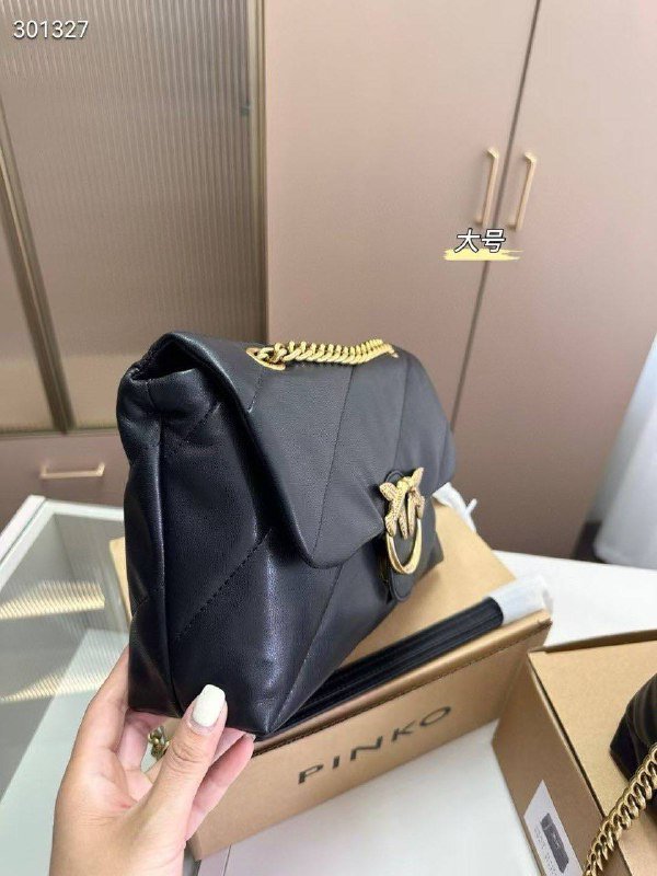The Pinko Love Bag Puff Black Leather Gold Logo is designed in premium black leather, highlighted with the iconic Pinko emblem in gold. Available in Mini and Medium sizes, this bag is both elegant and versatile, perfect for any occasion.