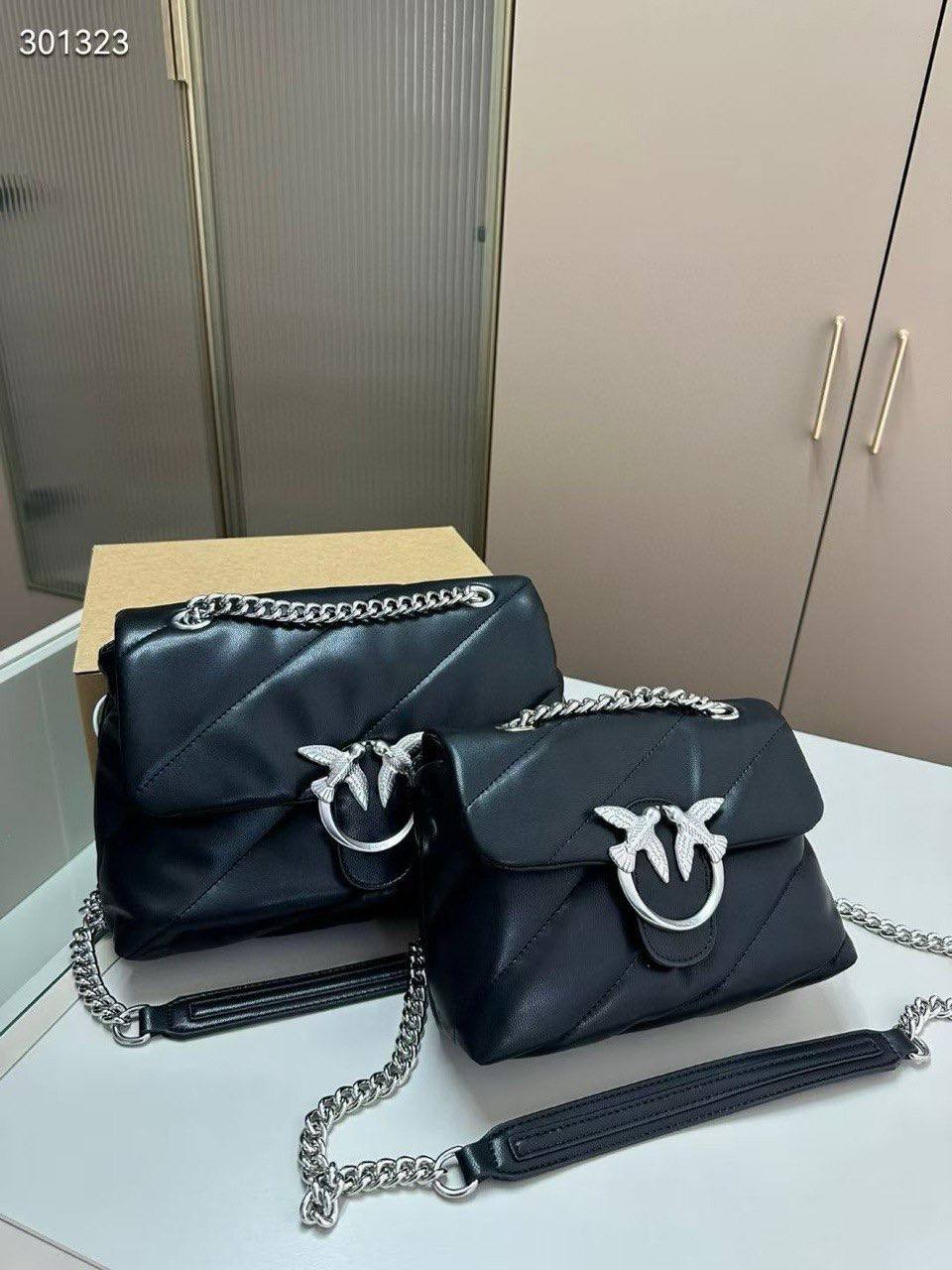 The Pinko Love Bag Puff Black Leather Silver Logo is crafted from premium leather, featuring the iconic silver Pinko emblem and a versatile crossbody/shoulder strap. Available in Mini and Medium sizes, this luxury handbag is the perfect mix of elegance and functionality.
