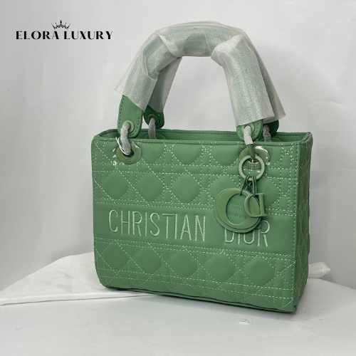 The Small Lady Dior Bag in green Cannage calfskin combines elegance with modern sophistication. Featuring Dior’s signature Cannage stitching and tonal charms, this bag stands as a refined icon of the house. With a structured silhouette and versatile strap, it can be carried by hand, on the shoulder, or crossbody — perfect for daily use and evening style. Size: 23×19 cm.