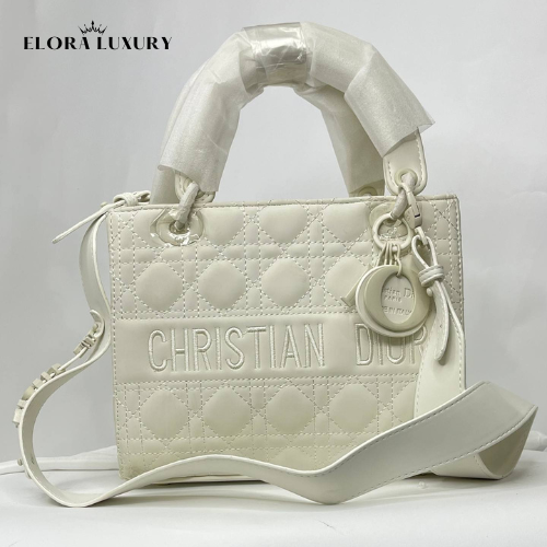Small Lady Dior Bag – White Cannage Calfskin (23×19)